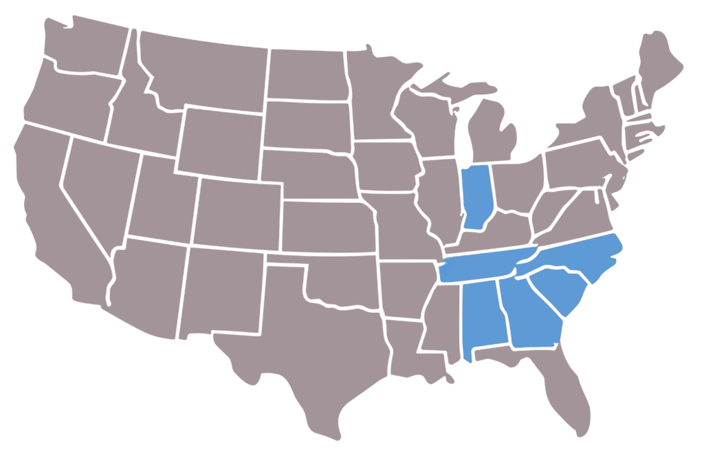 Our brokerage team is active across Alabama, Georgia, Indiana, North Carolina, South Carolina, and Tennessee — delivering strategic support for investors, buyers, and sellers from coastal metros to mountain communities.